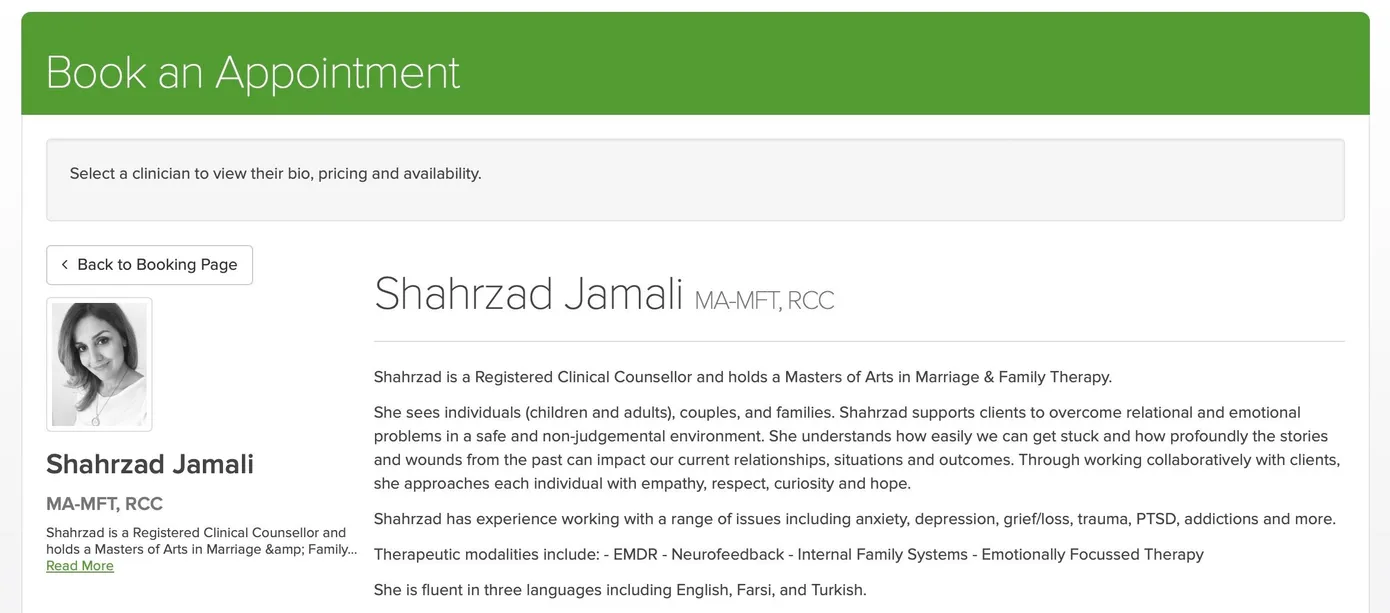 In the following sections, we’ll break down the process of finding a therapist at Sojourn Counselling and Neurofeedback, taking you through the steps of understanding therapist bios, looking at their schedules, navigating the price points, and finally, how to make an appointment through our user-friendly online booking site. We’ll also guide you on how to prepare for your first session and the importance of maintaining an open dialogue with your therapist.