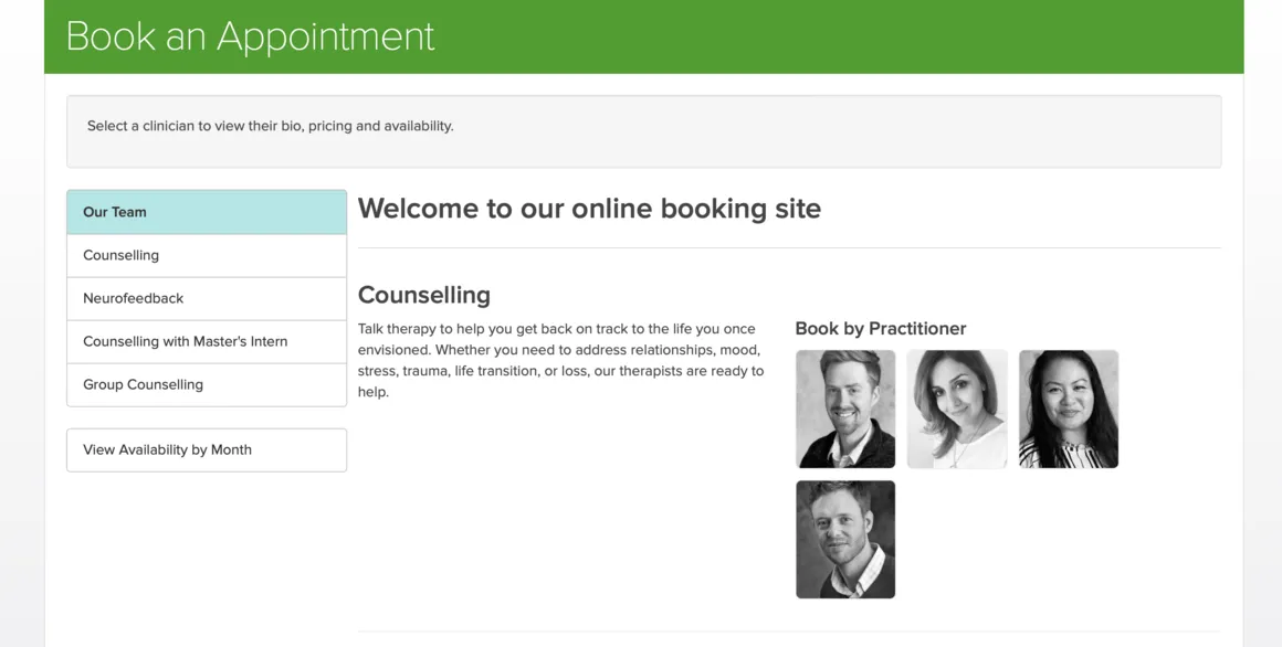 Having explored our therapists’ bios, schedules, and understood the different price points, the next step is to schedule your first appointment. At Sojourn Counselling and Neurofeedback, we’ve made this process as straightforward and convenient as possible with our intuitive online booking system.