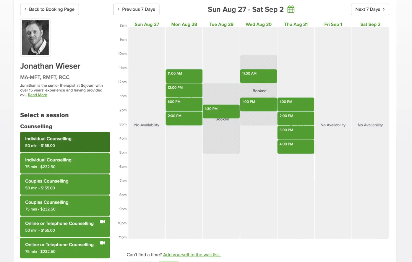 3. Select a Date and Time: The system will display the therapist’s available slots. Choose a date and time that fits into your schedule.